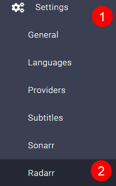 !Settings => Radarr