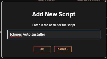 3. A popup will ask you to name the script. For this example, use fclones Auto Installer and click OK.