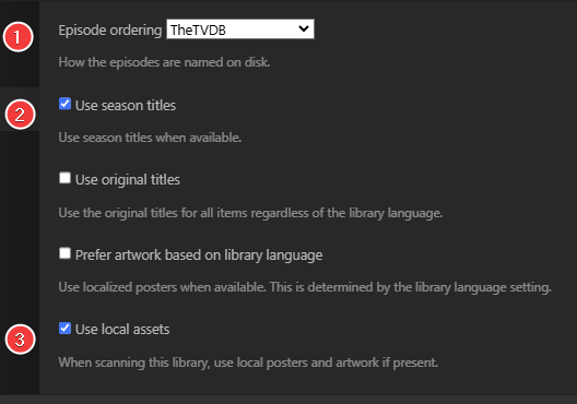 3. When scanning this library, use local posters and artwork if present. (Local subtitles files will be used whether this is enabled or not)