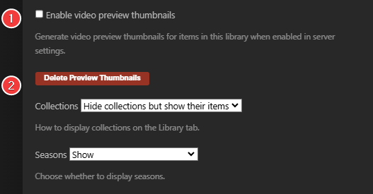 1. This option creates a series of preview thumbnails from a media item when it is analyzed. These images are used by some Plex apps when you move back and forward in an app with the timeline scrubber. They’ll also be displayed in Now Playing when someone is streaming from you so that you can see where they are in the video.